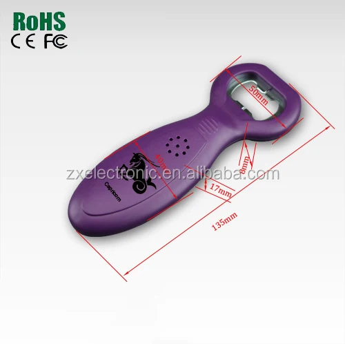 | Material | speaker , music chip , battery ,PCB ,push button ,bottle opener |