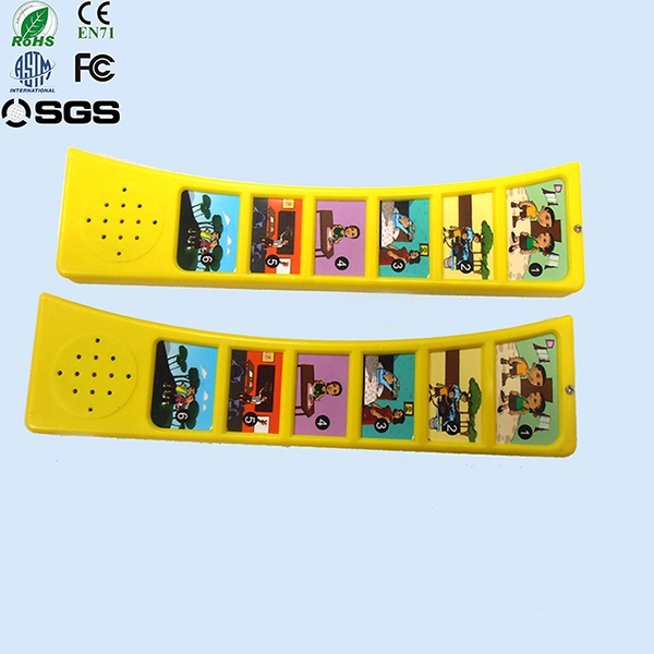 Operation: turn on the sound button, the pre-recorded sounds can be heard when pressing the relative pictures