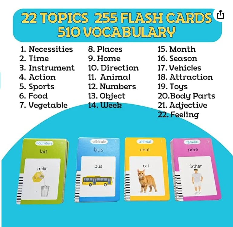 You are here: Home » Products » Talking Products » Talking Flashcards » Custom Native Autism French & English Bilingual Flash Cards for Toddler/Beginning Learning Educational Toy for Ages 2-8 Monterey