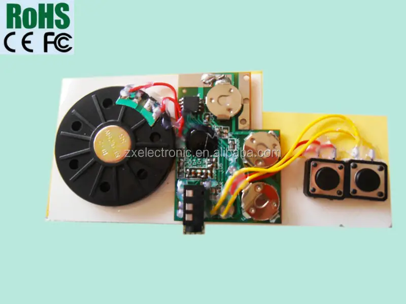 The music chip which we produced can be customized. Both duration time and speaker size, and various buttons supplied. It's recordable so you can record your own voice or sound, or your interested melody and so on.