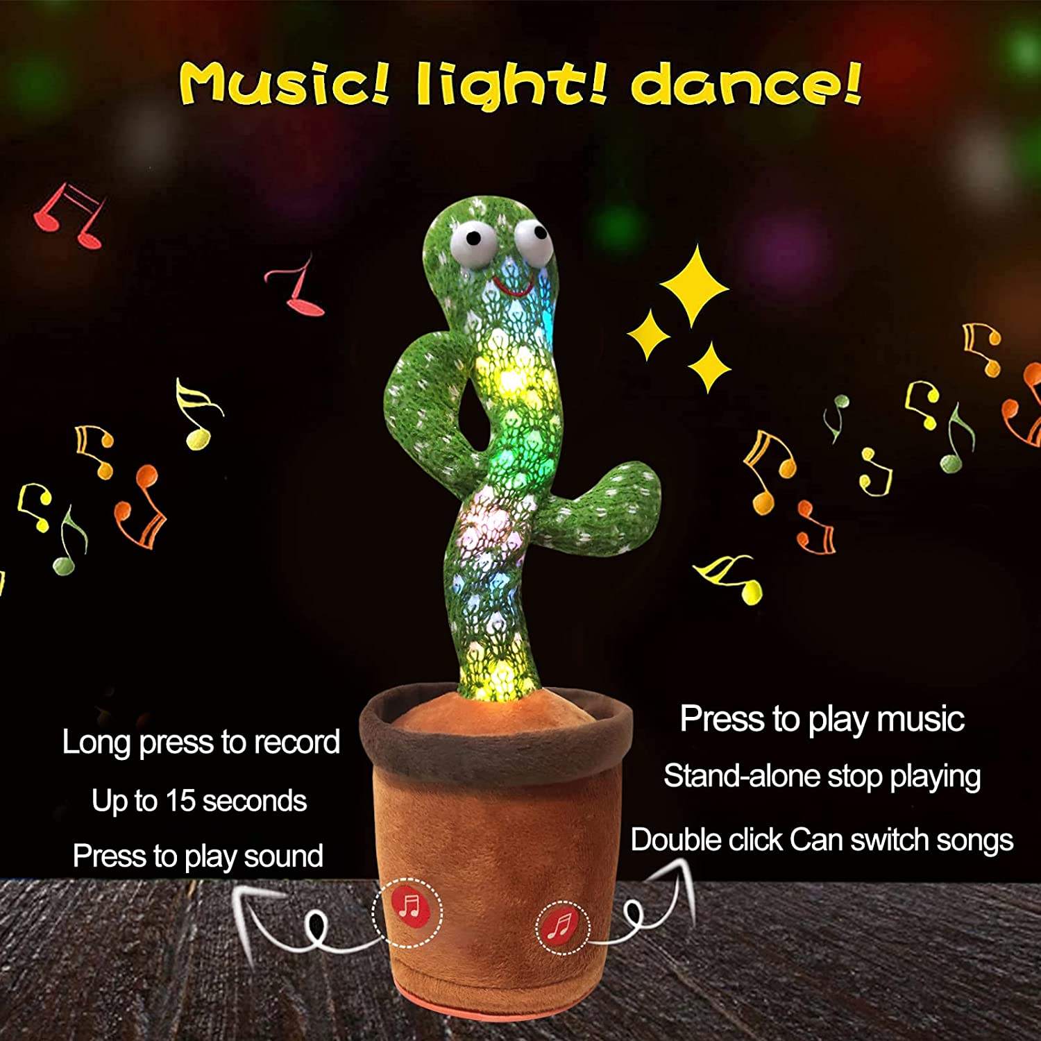 【DANCING AND SING】Build-in dozens of cheerful songs(most are in English), While singing or mimicking, The cactus can twist its