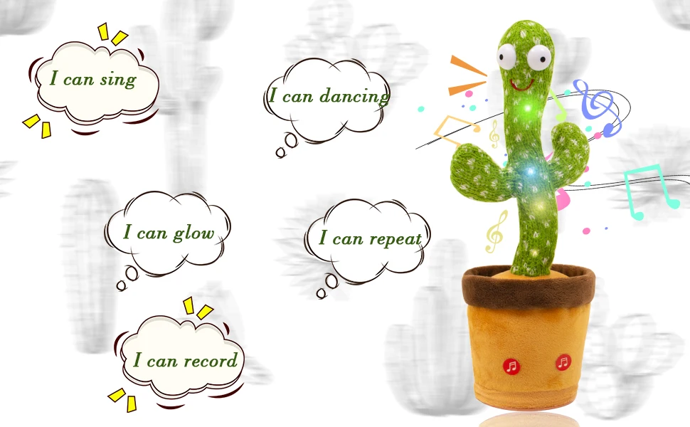 【REPEAT WHAT YOU SAY】 When you speak to this cactus, you will get a response, not just recording and replaying, but a unique voice, just like a parrot. This magical cactus toy looks like a living pet. Children can interact with it and learn a lot, it is very helpful for language training and can be used as a good preschool toy.
